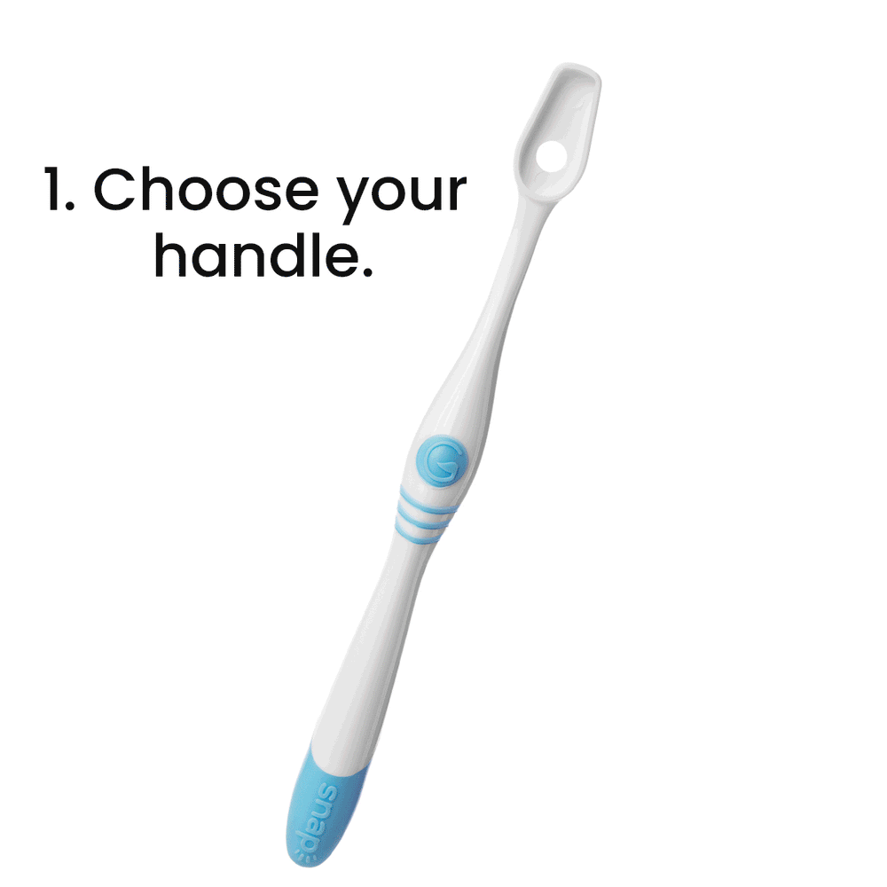 The Snap Toothbrush handle is made to be durable allowing for long-term use with break-resistant nonslip grips. This reduces the need for frequent replacements. High-grade molds ensure precision and quality. The nylon bristles perform like regular toothbrushes, and the unique snapping mechanism uses natural brushing movements to secure the brush head, ensuring it stays in place while brushing.